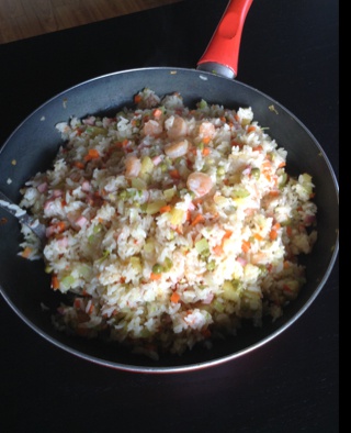 虾仁什锦炒饭,看看挺诱人,但要使虾仁口感嫩滑,米饭粒粒不粘不油这可是经过多次才得以完善的哦。 #午餐•2015年2月1日...