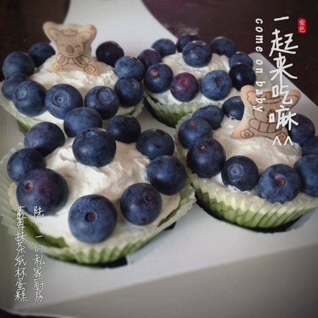 做了一下午蛋糕跟巧克力累的不想裱花,于是愉快的用蓝莓拗了造型~
