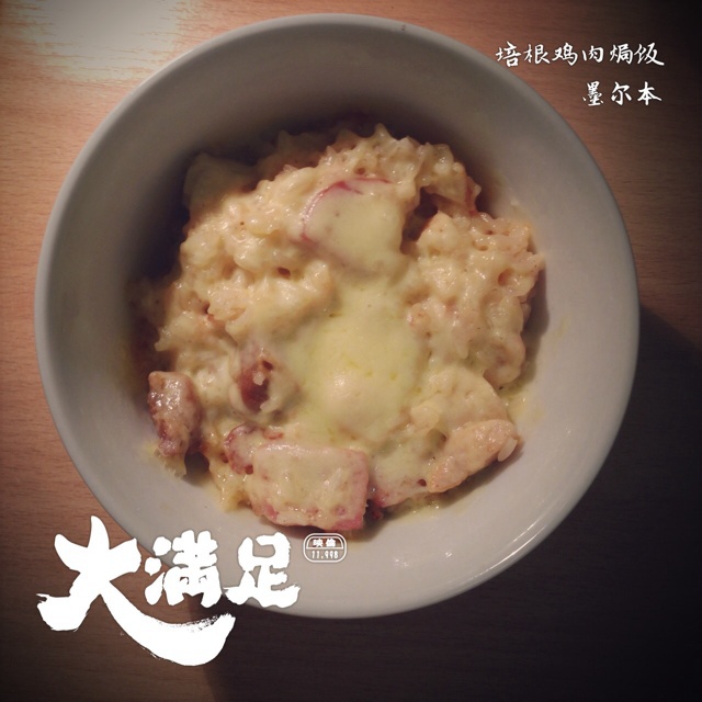 放了鸡肉,木有奶油只放了牛奶,微波炉3分钟让芝士融化,超级棒!