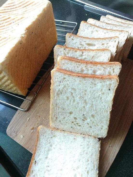 稍微修改,用了200克波兰种,加了50克全麦、30克煮熟的藜麦饭。之前做几次吐司,酵母失效老是发不起,这次换了酵母,又正...