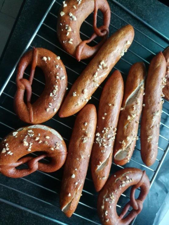 碱水真好看,略微发过了一点。出炉就吃了一个,实在是香!