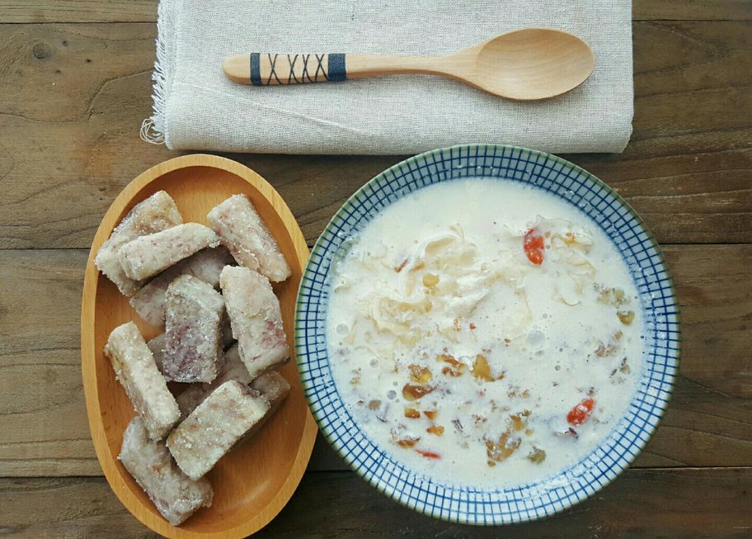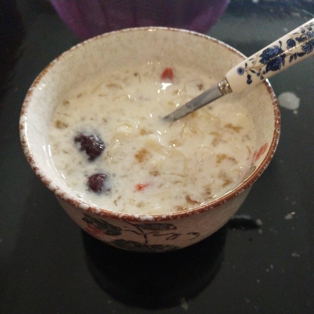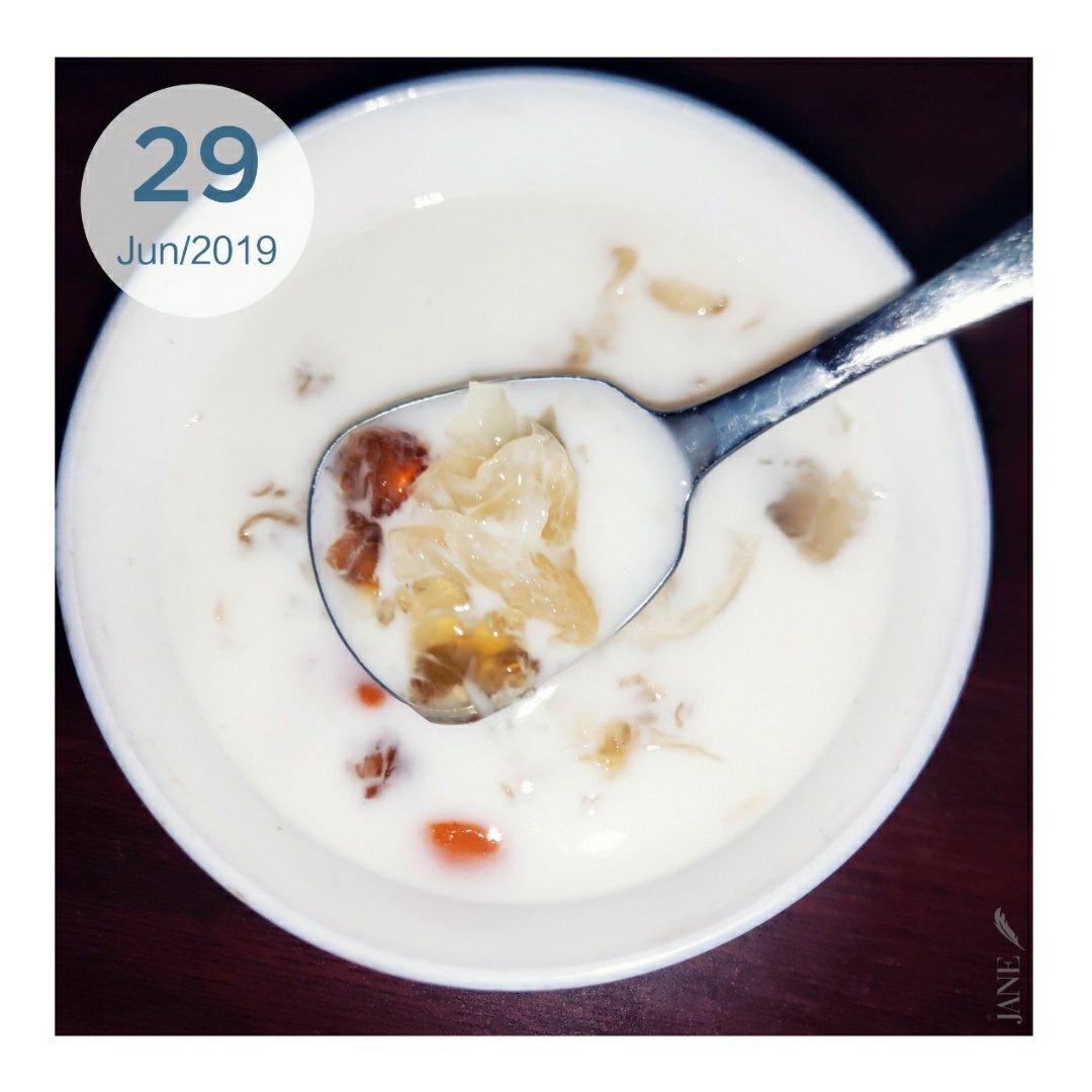 加了红枣枸杞,第一次先高压锅煮桃胶20分钟再加牛奶高压锅15分钟变豆腐渣了,这次...