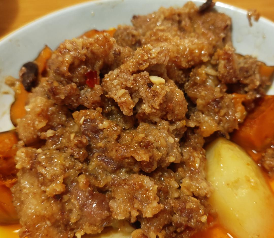 昨天的粉蒸肉,淡淡的咸,放的佐料都刚刚好,不喜欢主动夹肉吃的女儿主动吃了很多坨,底下放的紫薯,微微甜带着肉香,这次粉蒸肉...