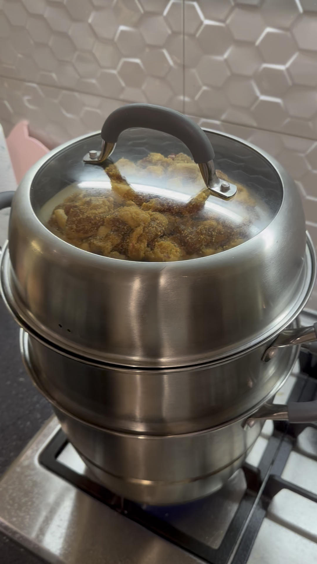 蒸锅冒出的热气里,满是天然米香和扎实的颗粒感——这才是粉蒸肉该有的样子。