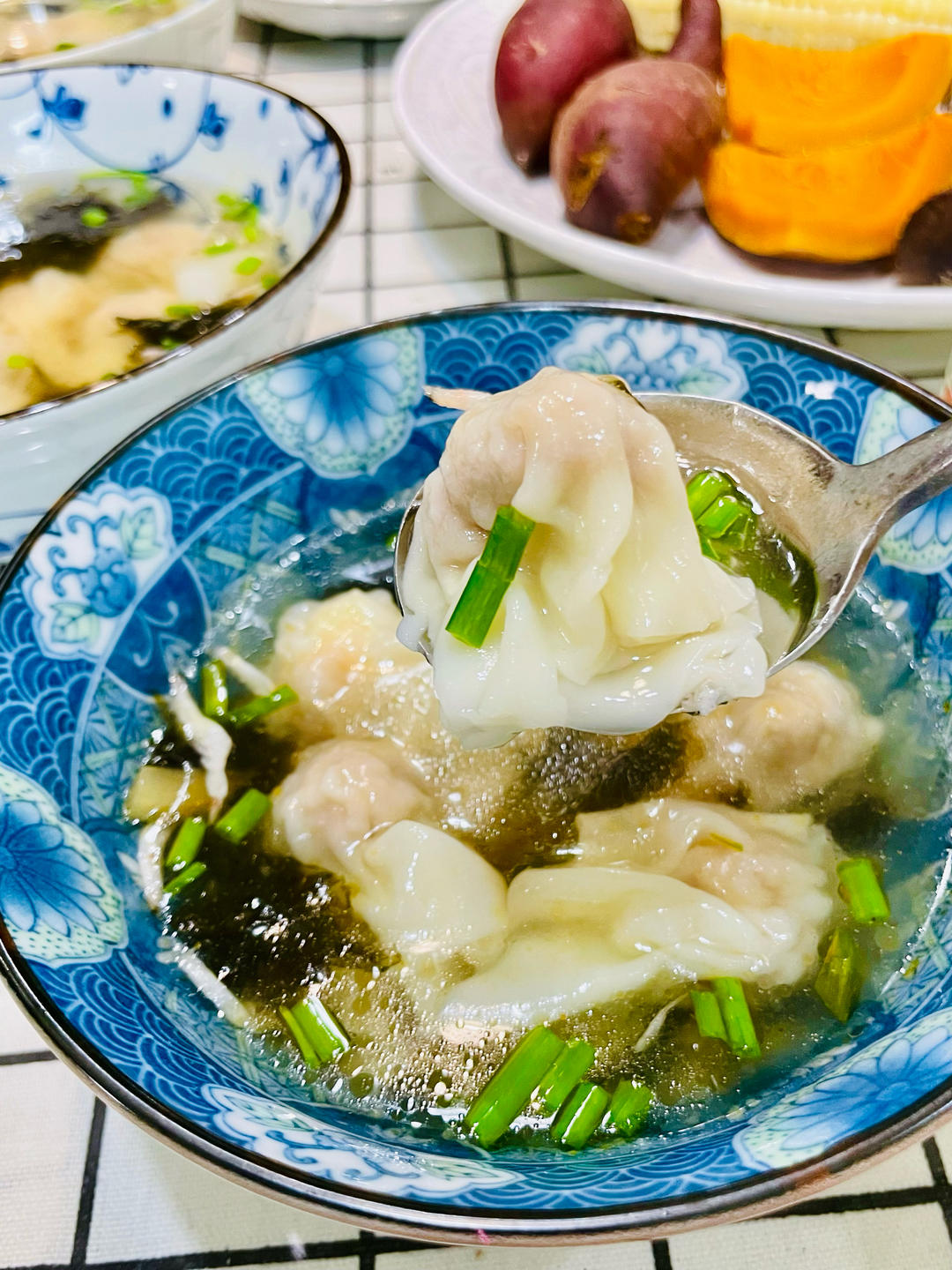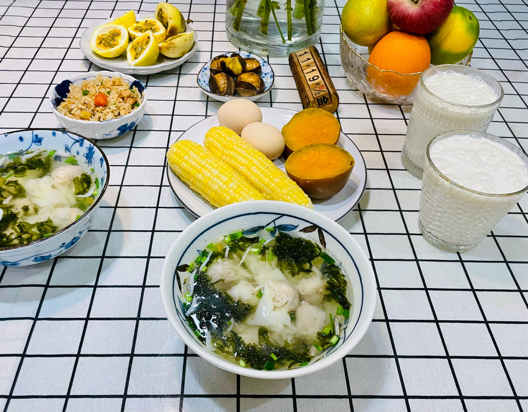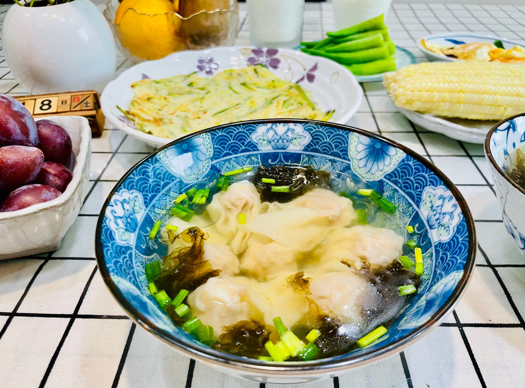 早上烧鸡汤馄饨加蛋丝...