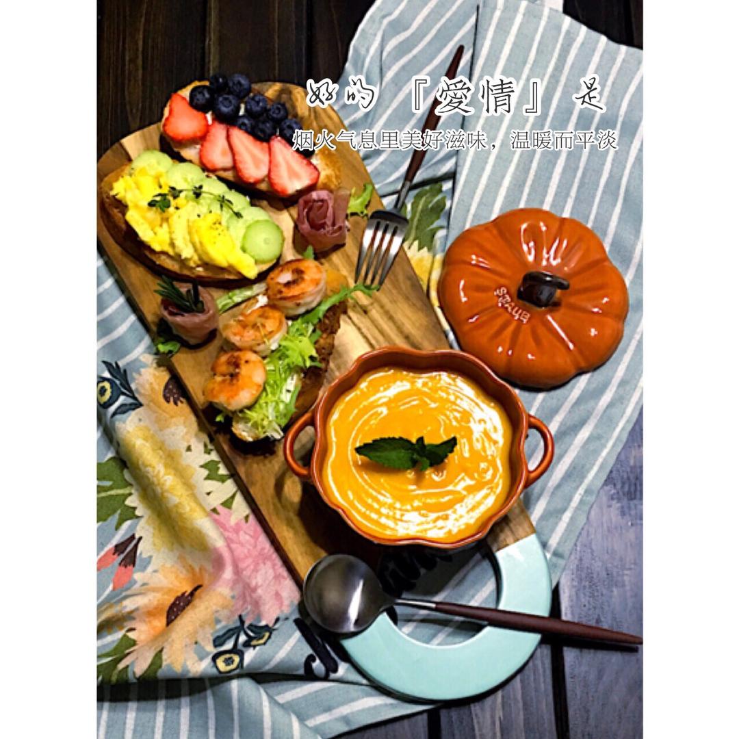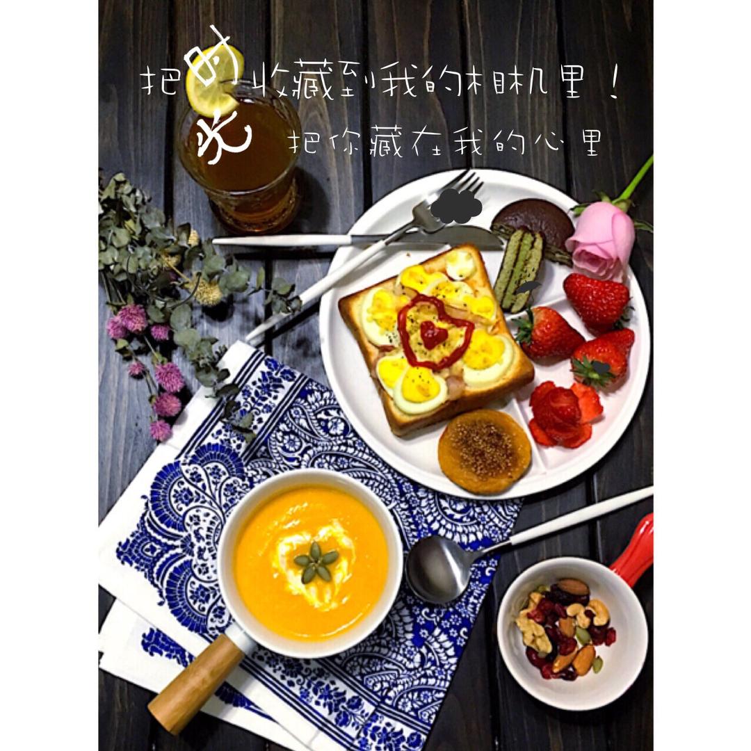 周四早餐:开放式三明治,牛奶南瓜粥