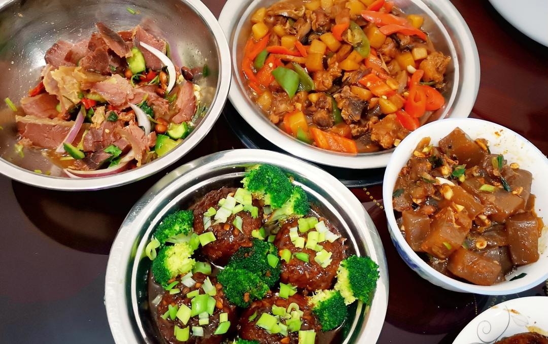 红烧狮子头,黄焖鸡,凉拌牛肉,炒凉粉