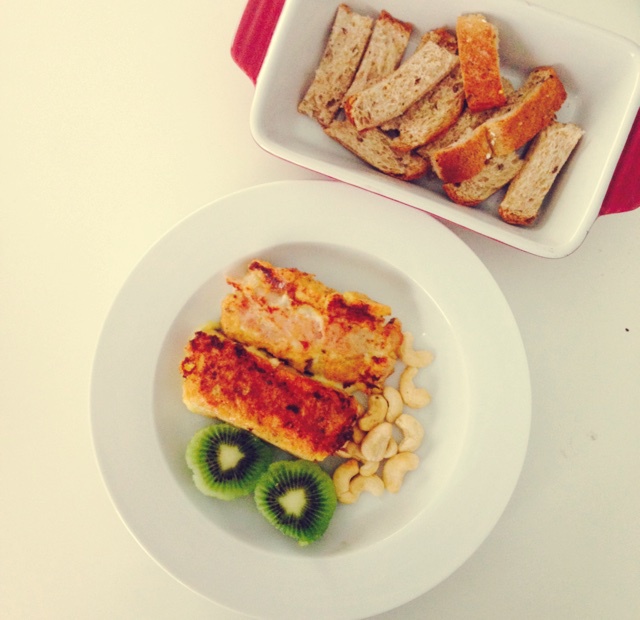 多在里面裹了火腿片 这样芝士就没有那么腻了 用全麦面包做的 应该白面包更好一点