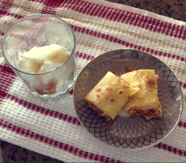 营养早餐之肉松蛋卷+波斯酸奶淋枫糖
