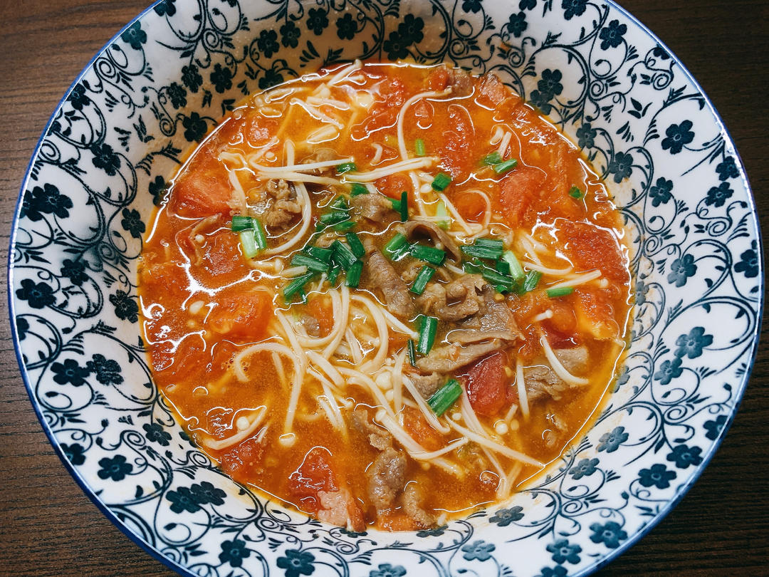 金针菇番茄肥牛汤,这是第二次做,还是很好吃!