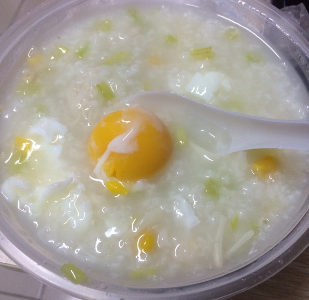 外卖党来了,金针菇玉米鸡蛋粥、外加没上镜的烤猪蹄!