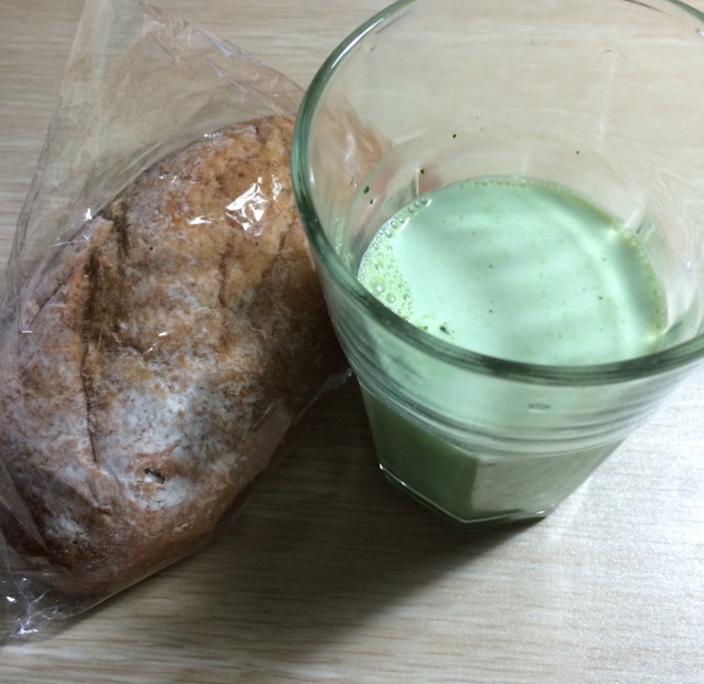 青汁牛奶、面包