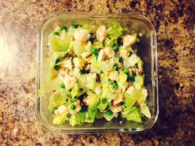 有机藜麦杂粮米+虾仁+生菜+有机豌豆,初榨橄榄油黑胡椒盐拌拌~
