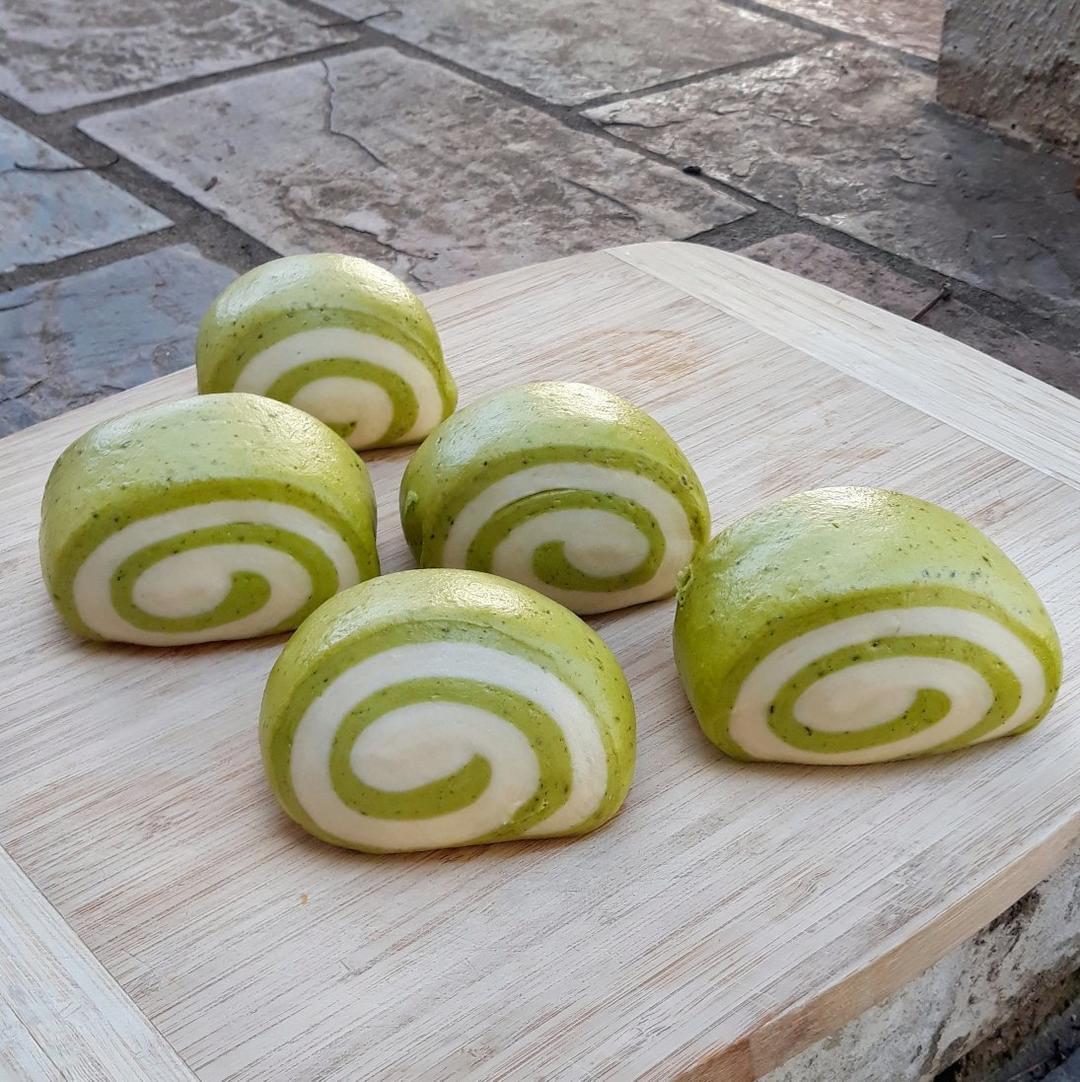 蒸之前的菠菜双色馒头,颜色很好看~