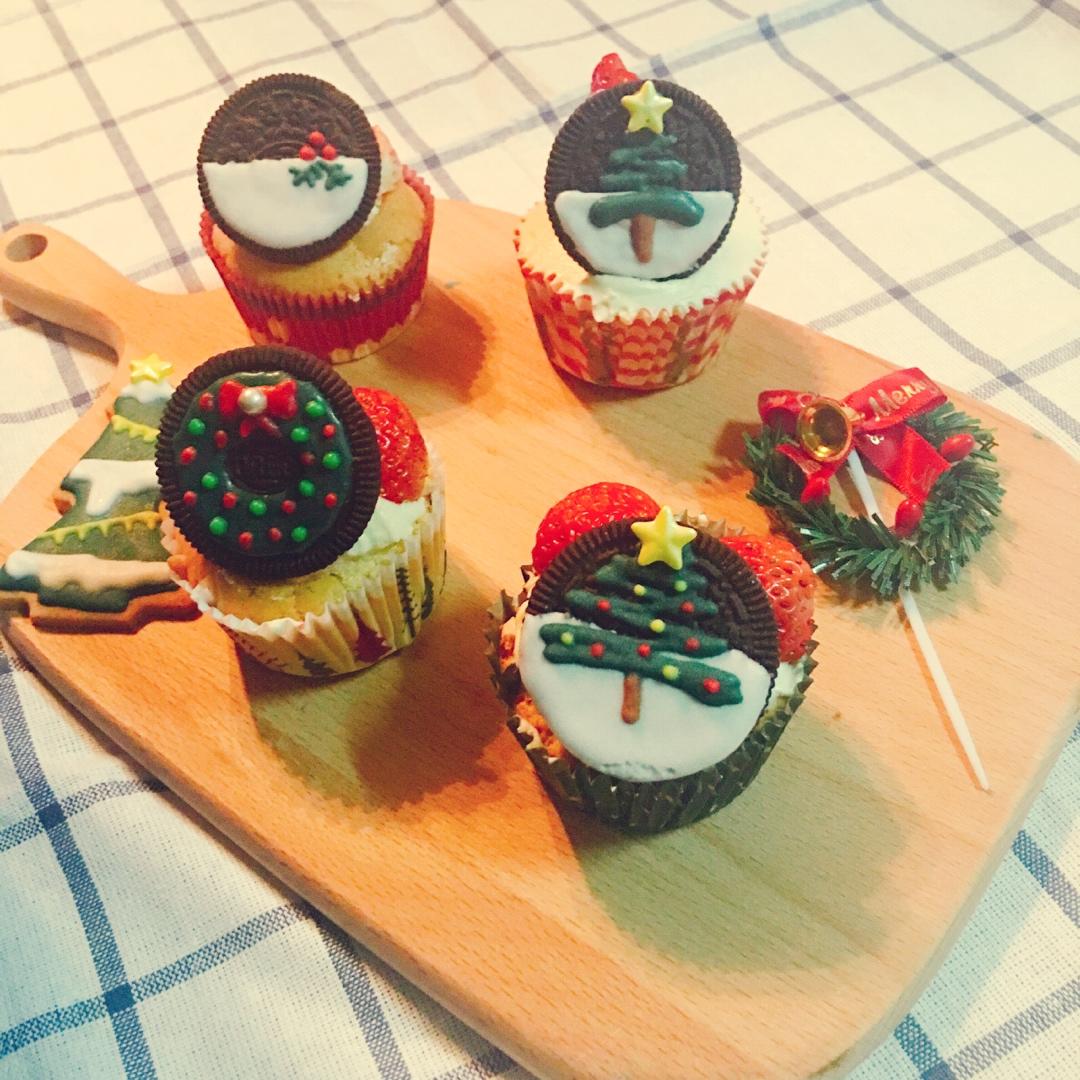 圣诞cupcakes ~奥利奥饼干做装饰很方便呢~