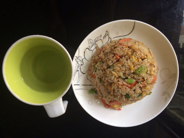 我的早餐,炒饭加白开水!
