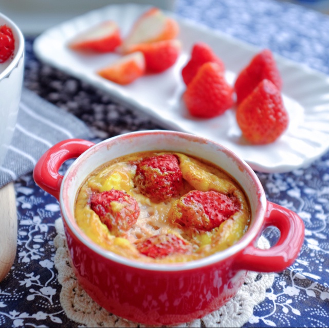 没错真的是脑子被门挤了丢了草莓到布丁里去烤,烤出来都爆了碗边都脏了哈哈哈哈好不美。早餐是doubl...