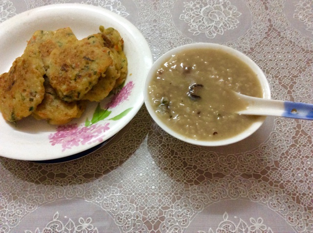 营养丰富的早餐,淮山、蚝干瘦肉粥!配土豆饼