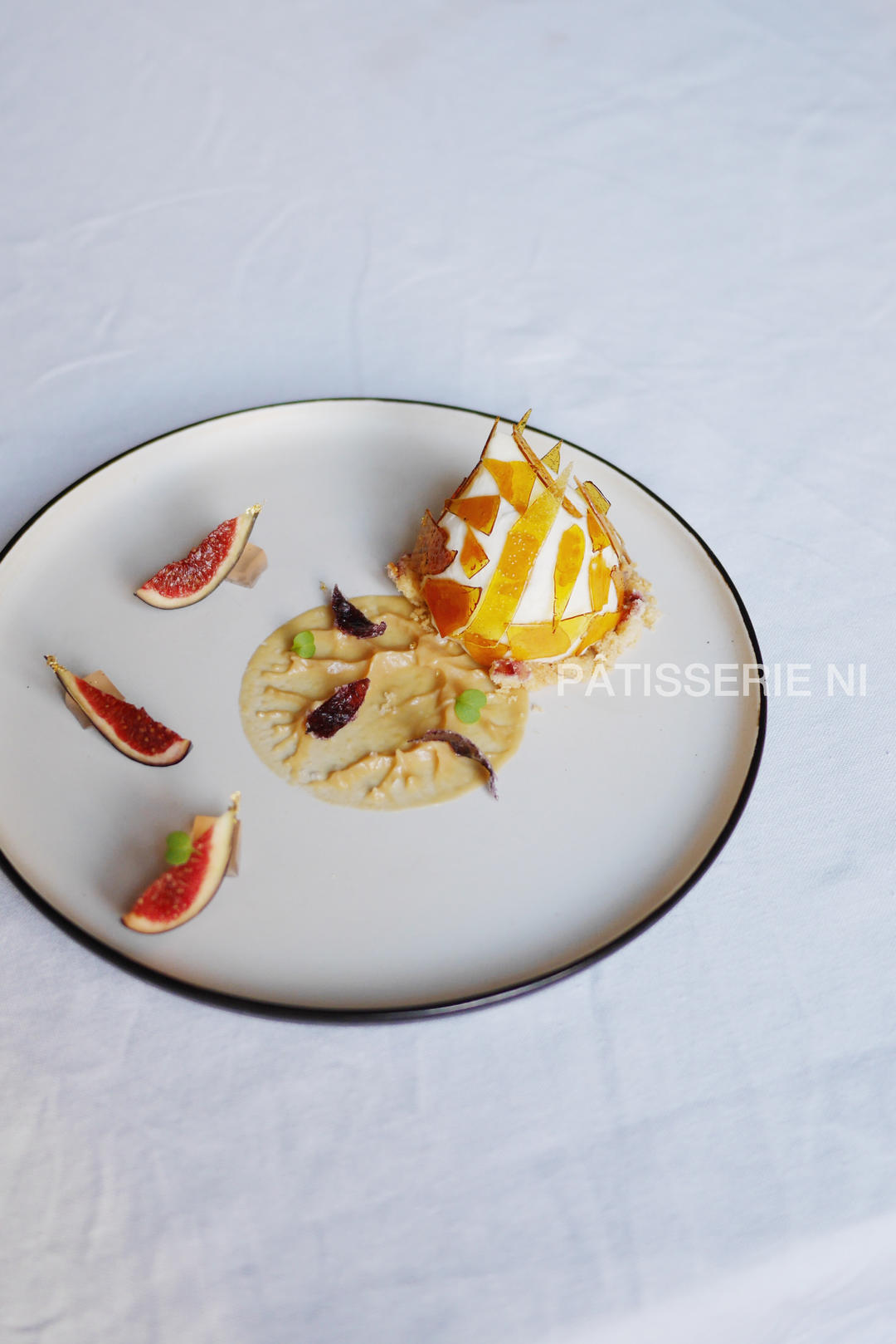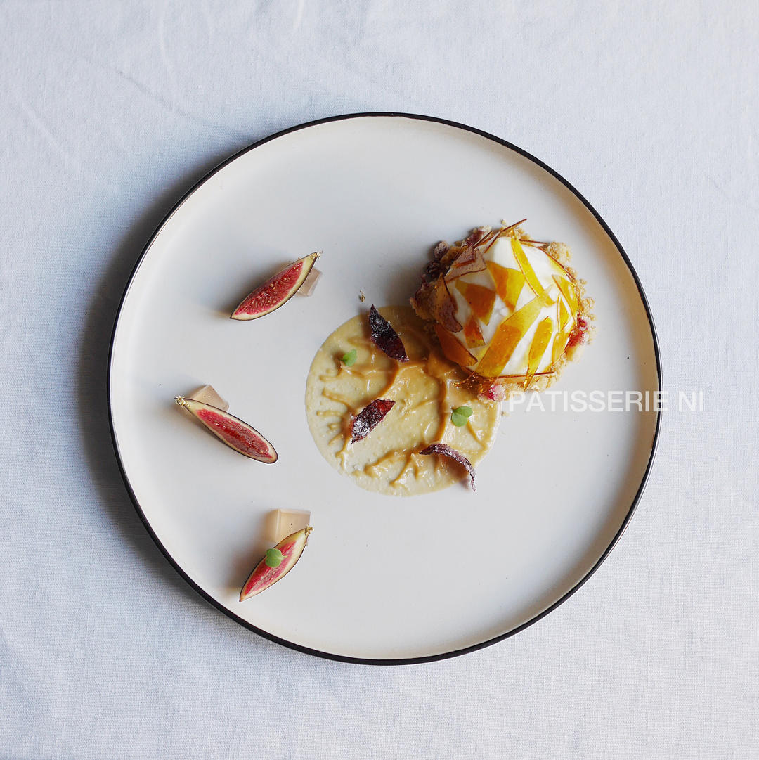 无花果&山羊奶酪🐐蜂蜜🍯组合 无花果形状的山羊奶酪慕斯包裹一颗香料糖煮无花果 搭配盐之花蜂蜜...