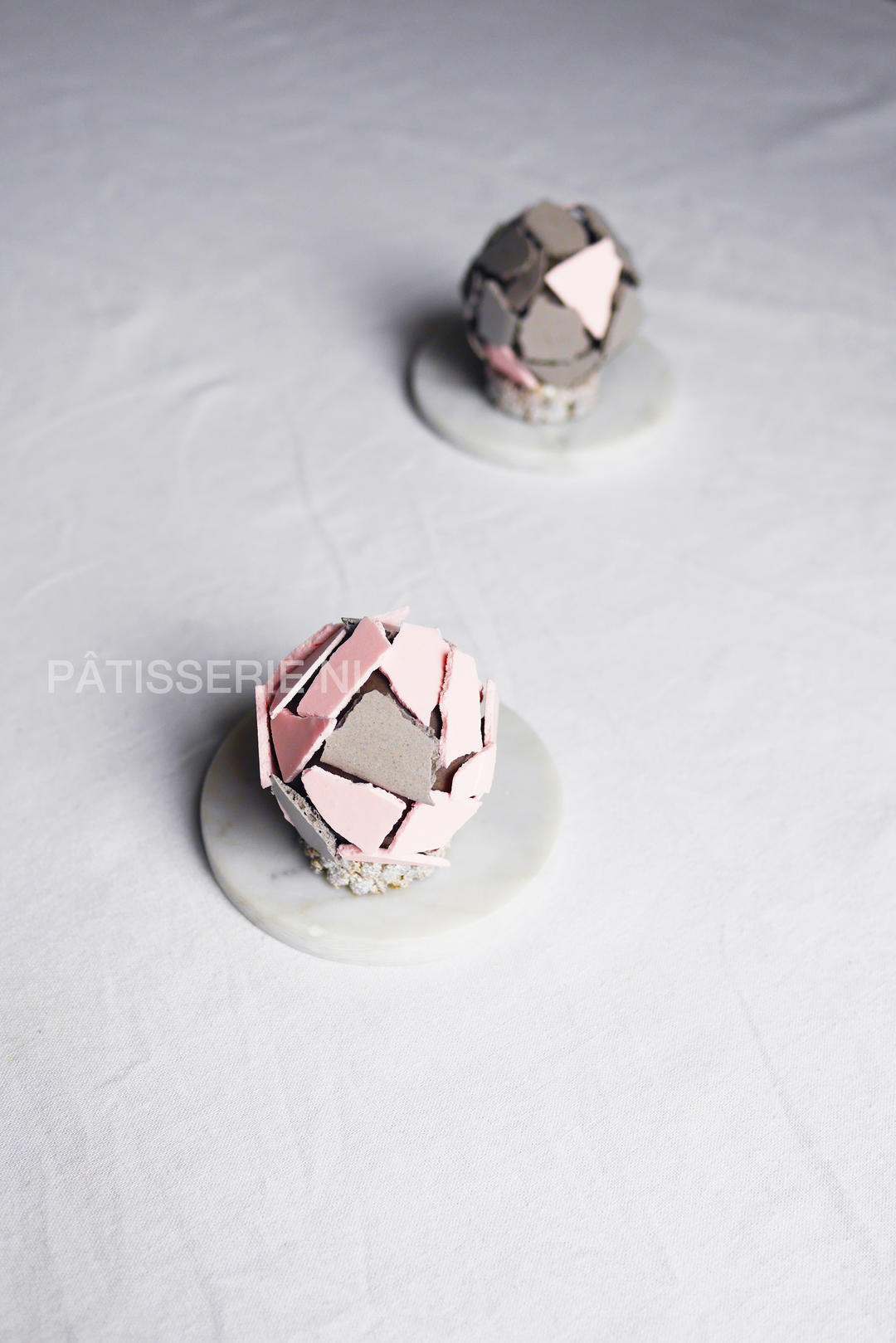 strawberry & sesame, pink & grey.
