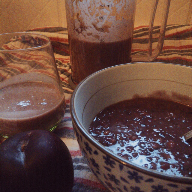 3月20日早餐 杂粮粥 豆浆(黄豆紫米芸豆)黑李
