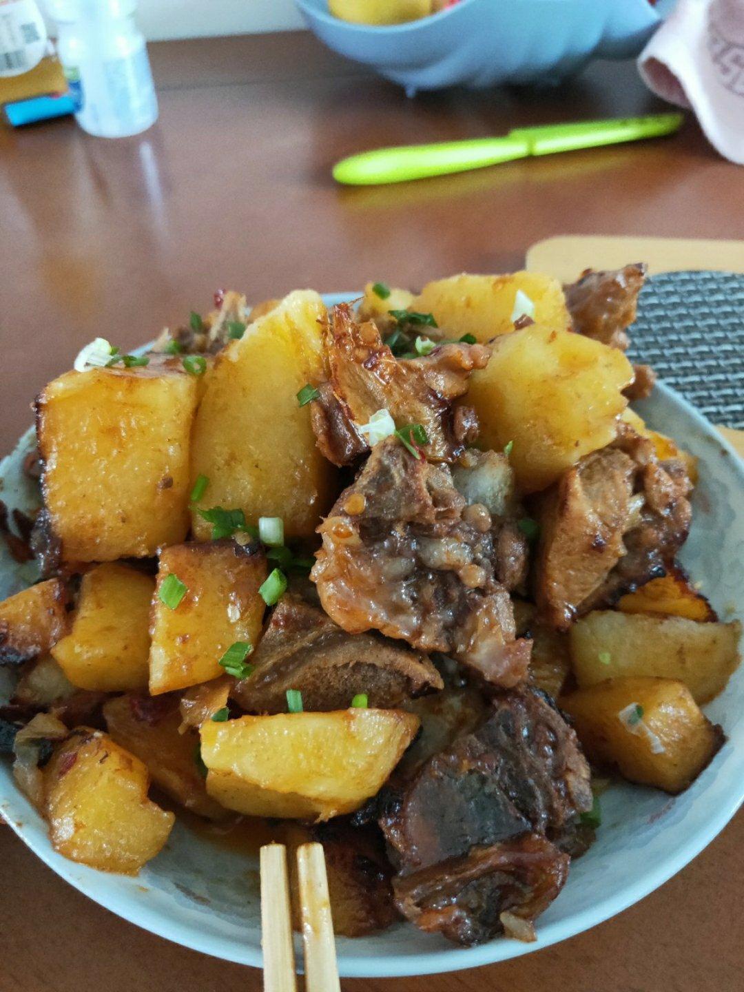 我的排骨是熬了汤之后怕浪费了,又拿来烧土豆排骨的 第一次做见笑了!