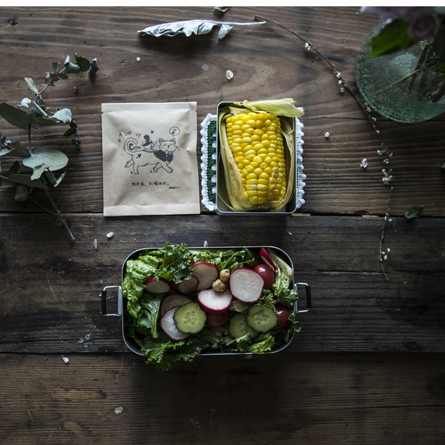 其实该叫夏季便当了吧~玉米,沙拉~日食记咖啡~