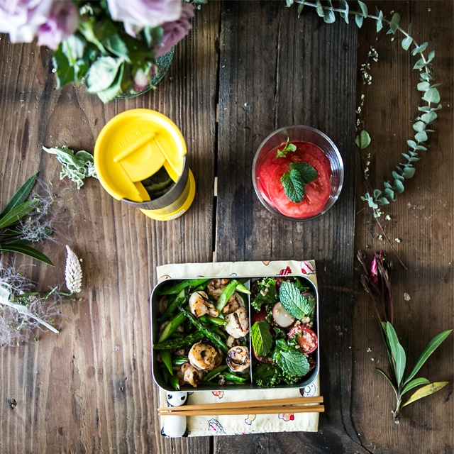 早晨的饭又没来的及发。。。其实做了一小顿的~中午吃芦笋炒虾仁,各种番茄的吃法~还有就是冰镇青柠薄荷水~午安撒...