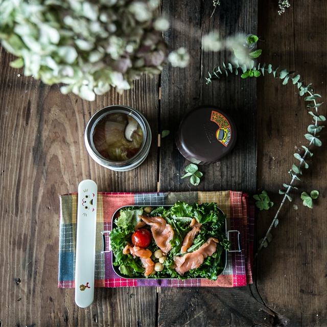 今天便当真心很标准撒~菜菜沙拉加一丢丢三文鱼,蔬菜汤!
