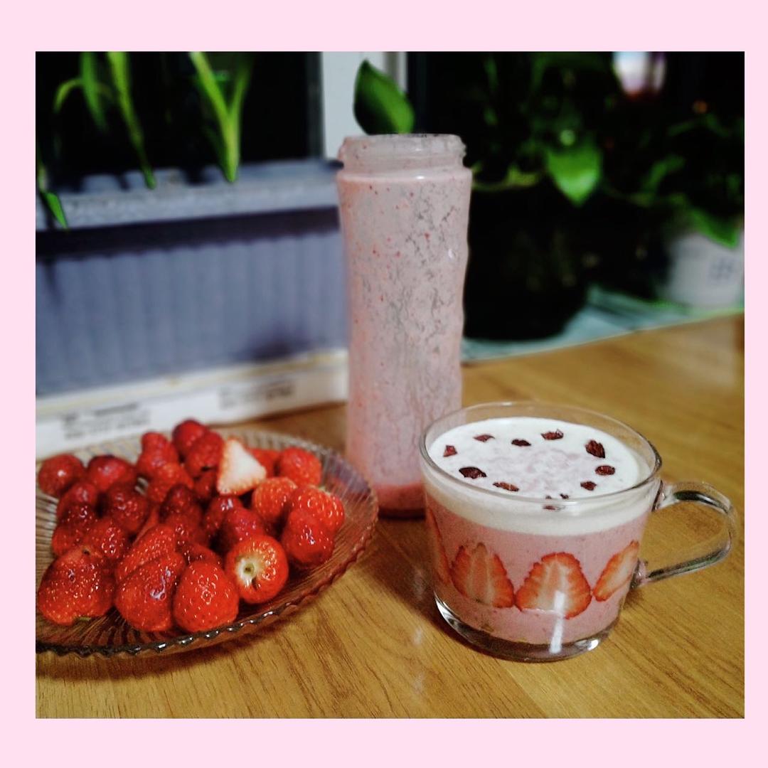 不加一滴水一颗糖的草莓奶昔🍓太好喝啦!