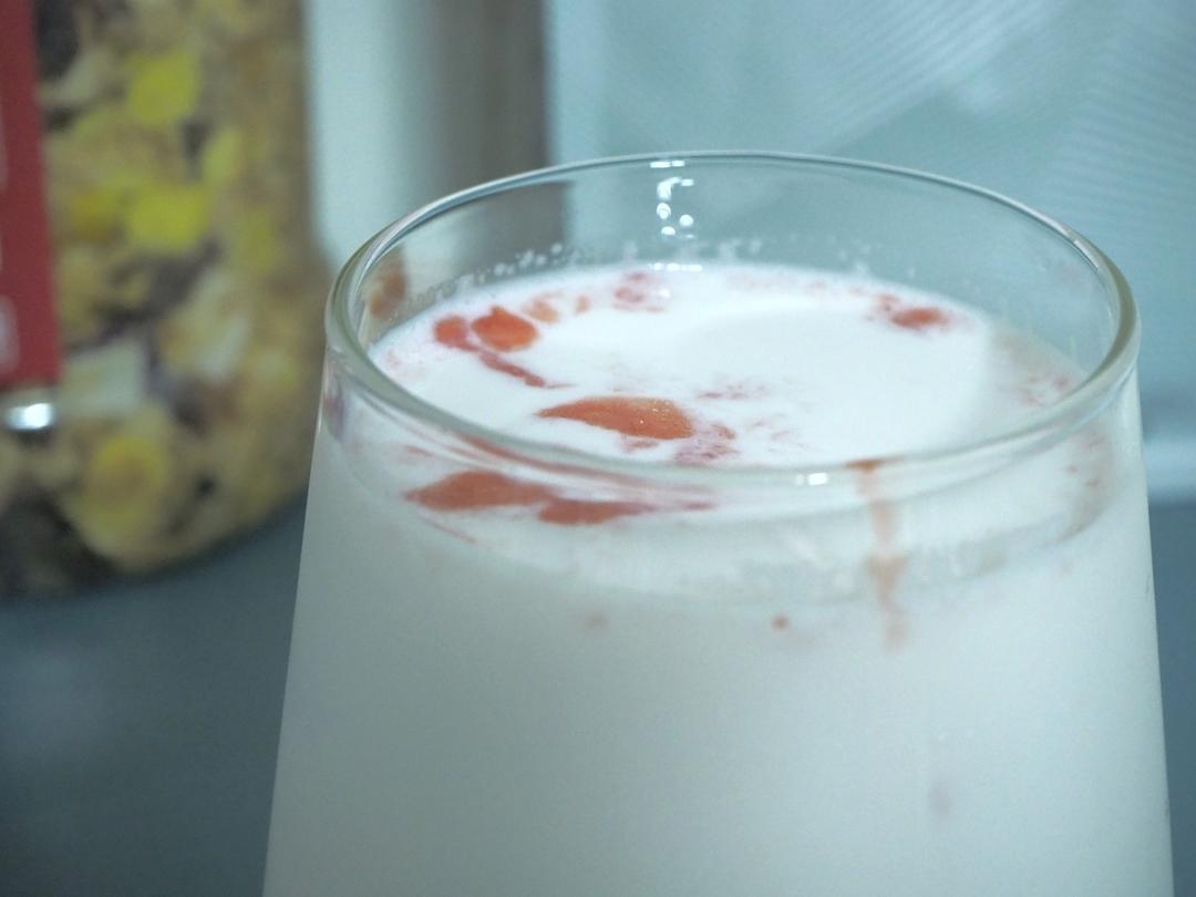 因为准备的密封罐较小,剩下的果酱做了草莓奶昔,味道还不错哦!