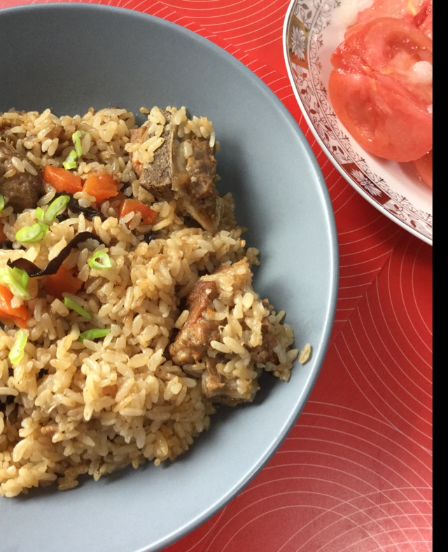 没有香菇,用的木耳,怕排骨不熟小炖了一下,真是香而不腻!配上小凉菜和蛋花汤,生活真是太美好了! #午餐•2015年4月1...