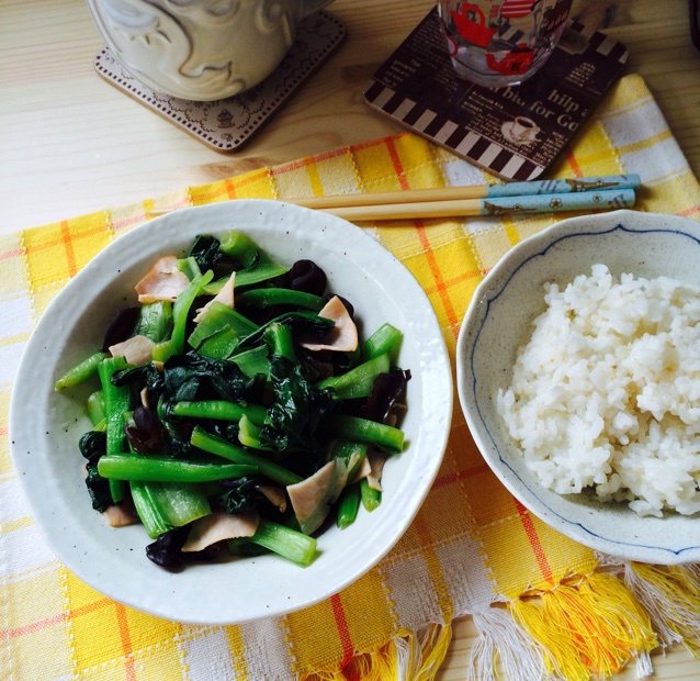 【火腿木耳炒小松菜+燕麦饭】