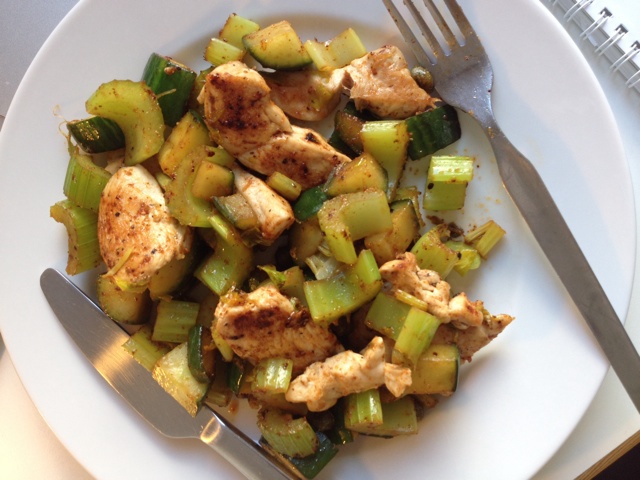 鸡胸肉炒西芹和黄瓜。taco粉风味