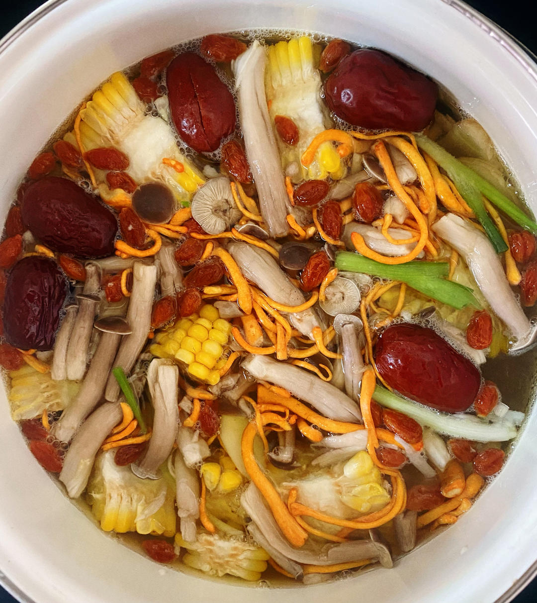 食材:猪小排、山药、玉米、鹿茸菇、虫草花...