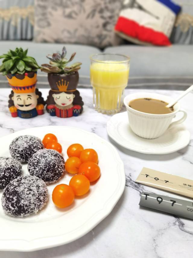 方子改了改,也成功啦!我没有加糖和油,紫薯本身就有甜味,加了适量牛奶~趁热滚上椰蓉,yummy!!! #早餐•2017年...