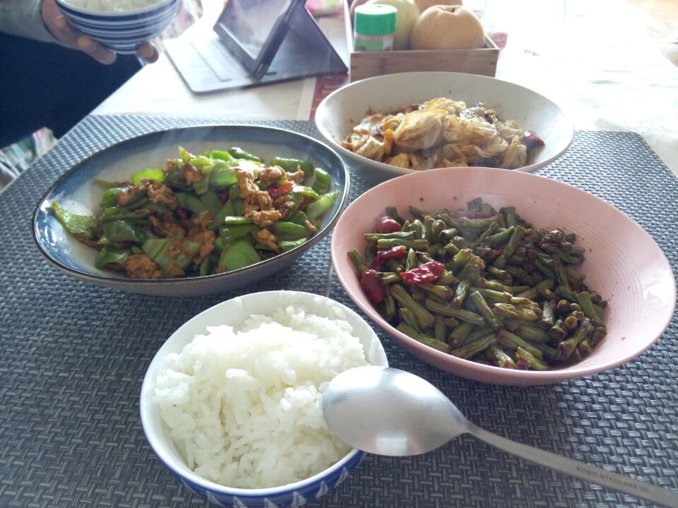 辣炒豆角,咸肉烧白菜