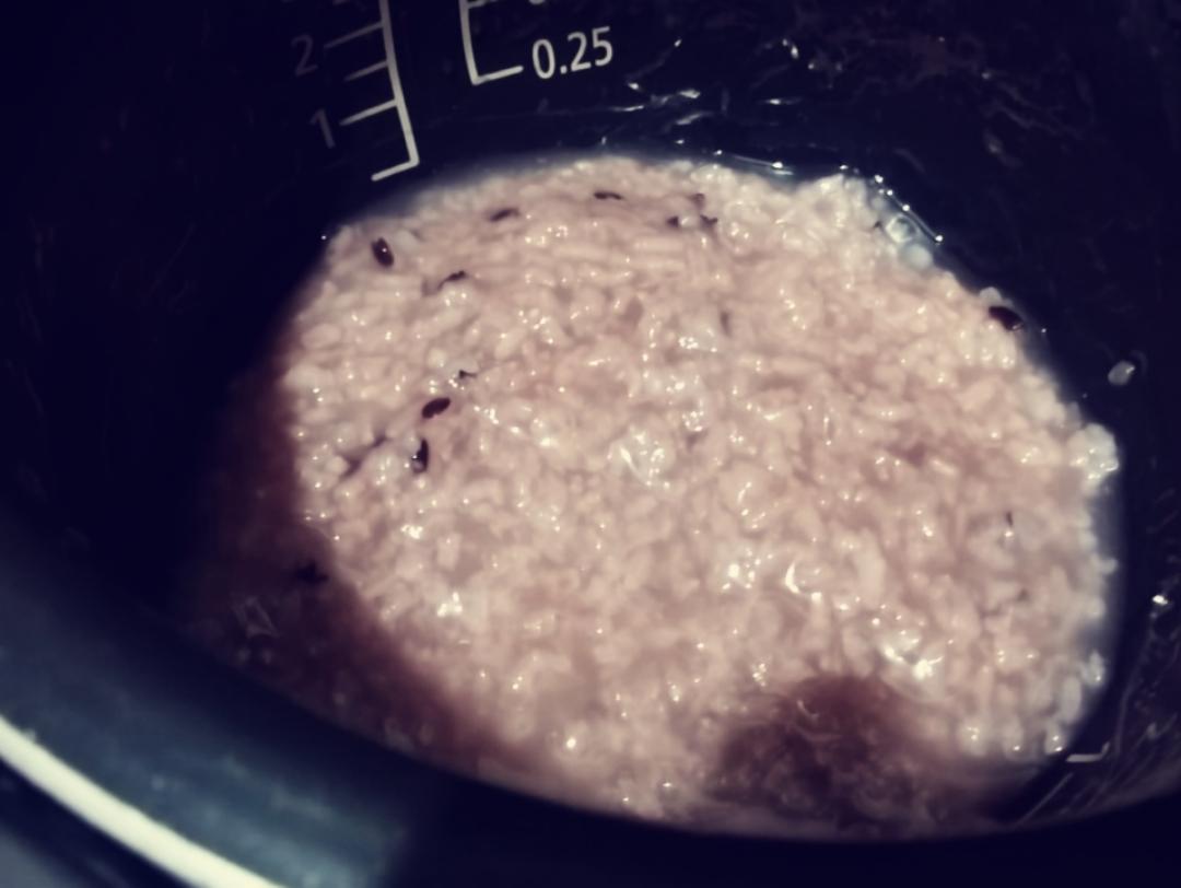 黑米燕麦仁粥配莴笋、橄榄 、机器打成糊糊的