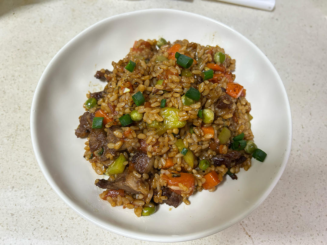 今天我用它来做一款非常营养的牛肉炒饭。🍛