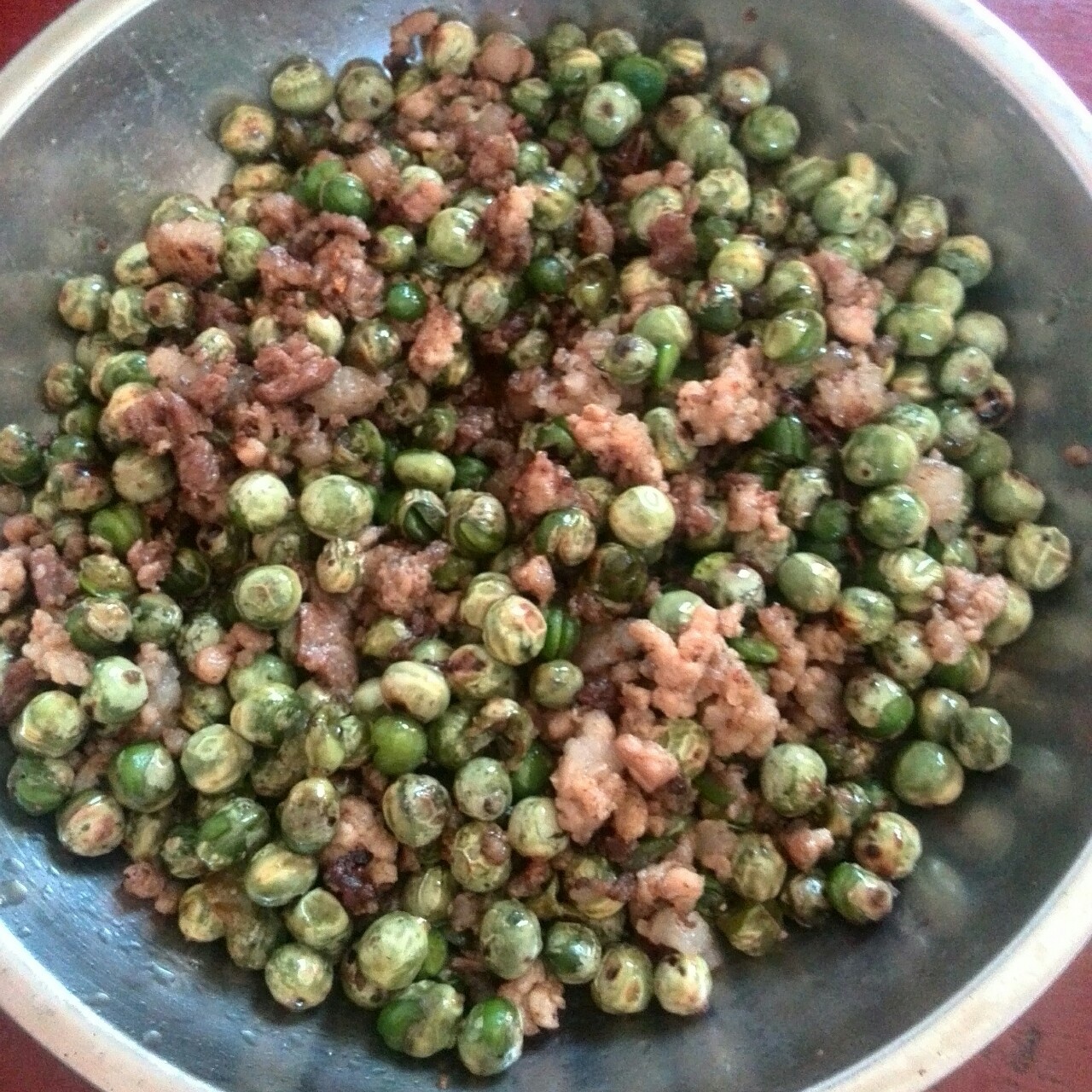 豌豆炒瘦肉,爸一个人把它吃完了