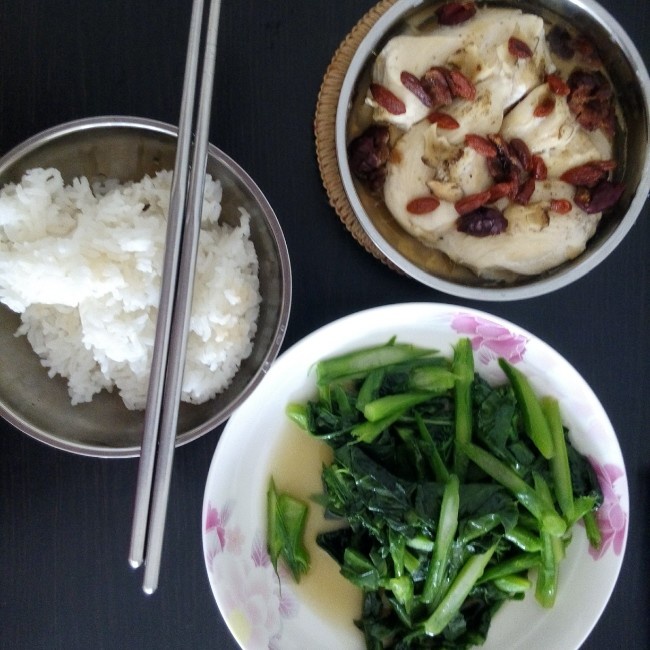 当归蒸鸡和鱼露芥蓝