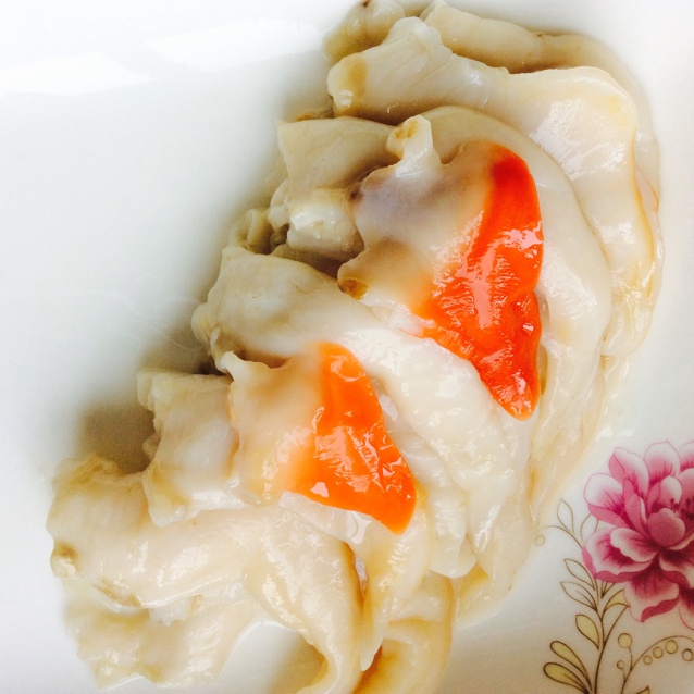 处理干净了的鸟贝,可以炒,可以包饺子,可以开水焯一下蘸辣根吃。红的是鸳鸯贝!