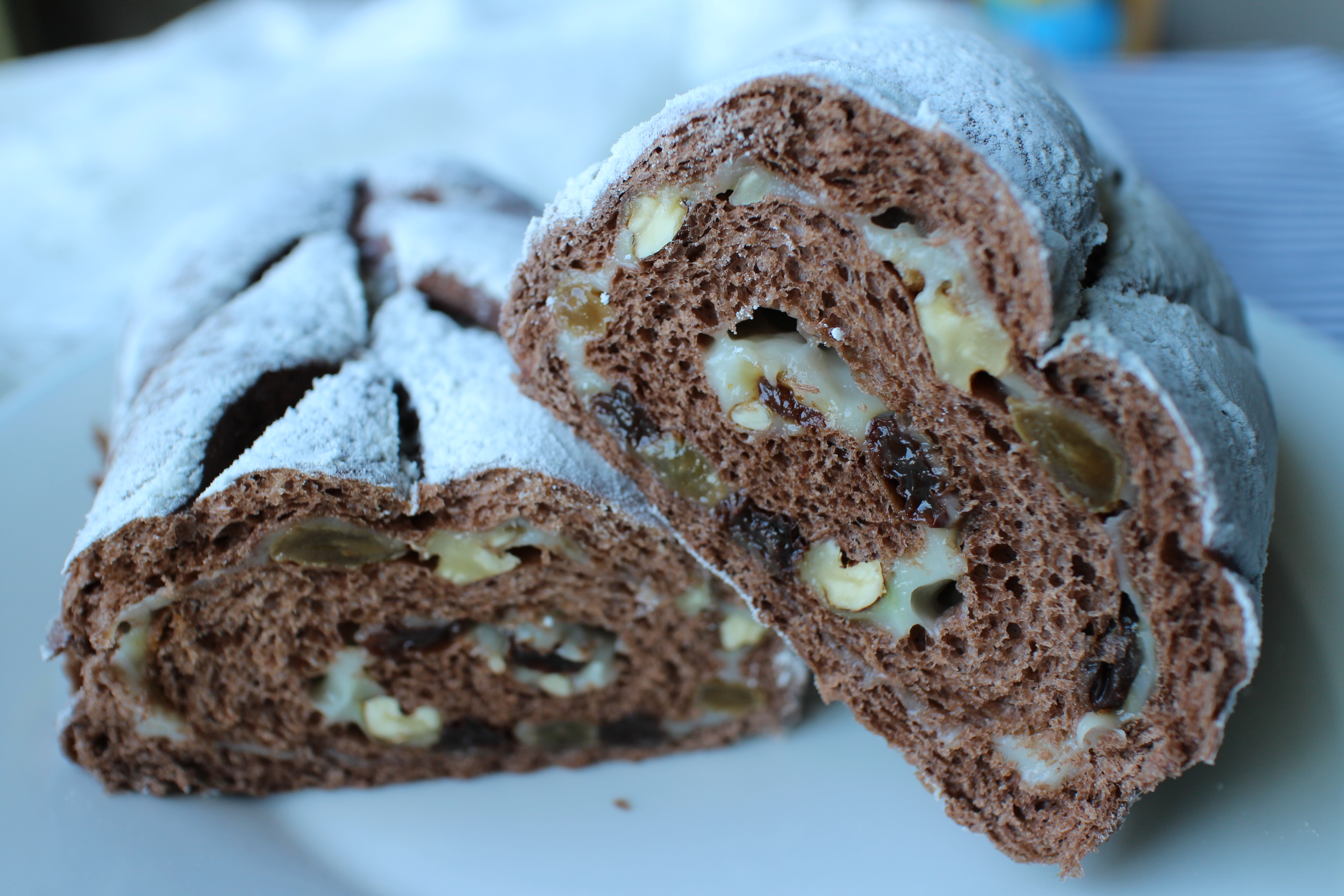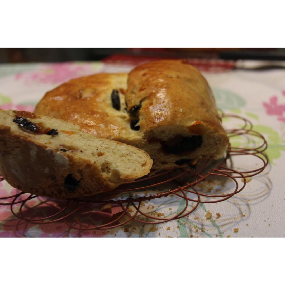 圣诞史多伦面包。虽然整形手残党没有办法烤出月牙形,然:一点儿不耽误美味!等不及凉了,迫不及待的切一块尝尝。忘了刷黄油更忘...