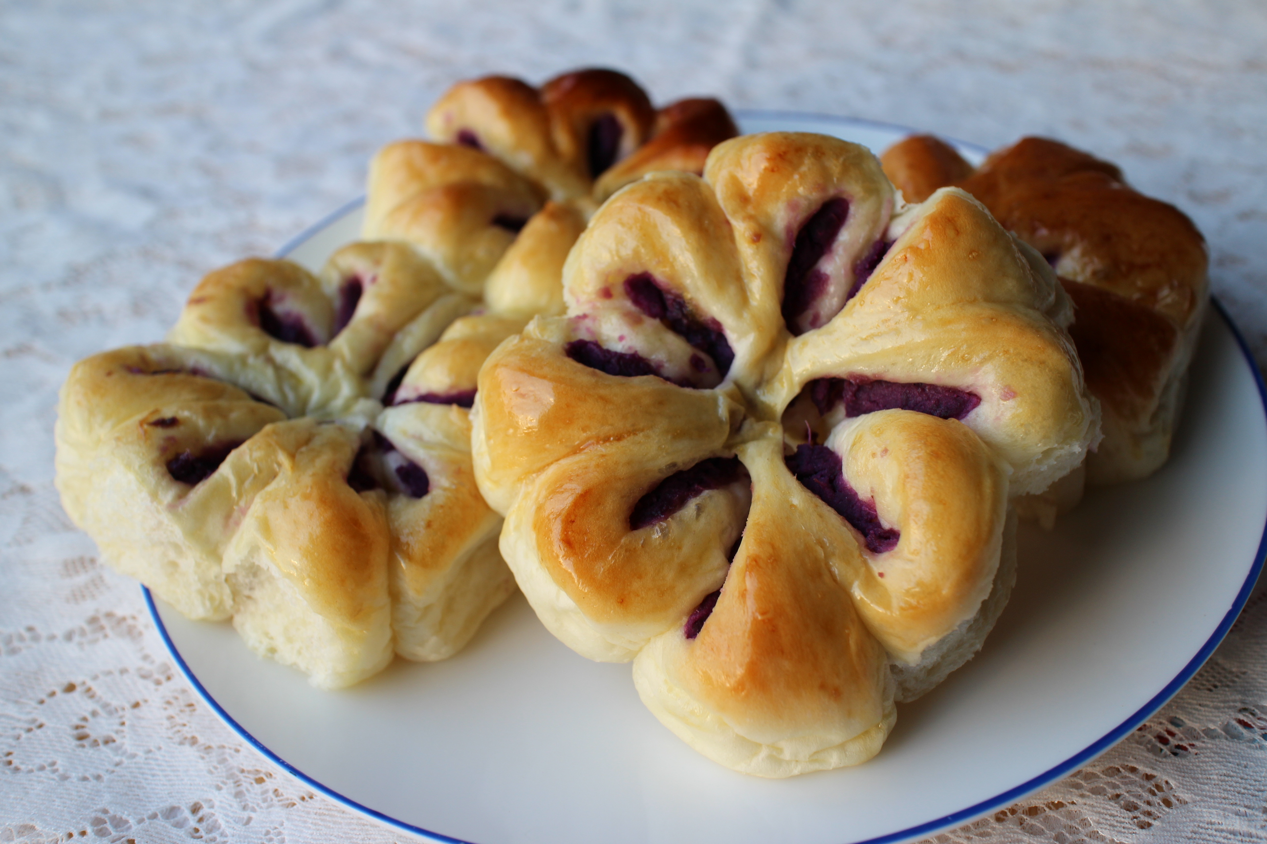 家里有淡奶油要消耗,所以用了另一个淡奶油的方子做面团,结果量太小,做得小花太小,整形的时候比较难操作,出来的效果一般般:...