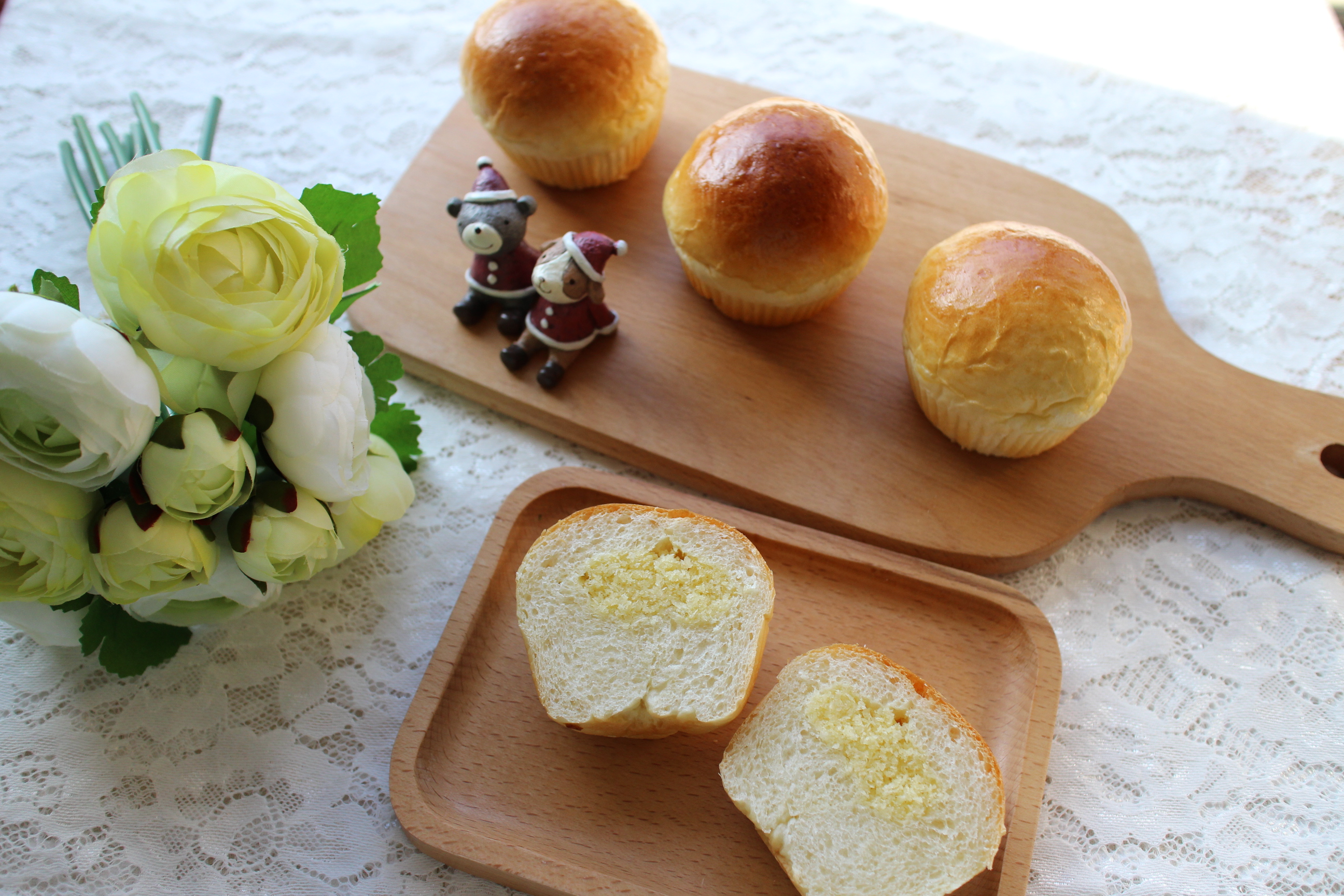 这一款面包这么火爆,当然要试试,不过家里没有了白糖,没有了糖粉……只好成了这副...