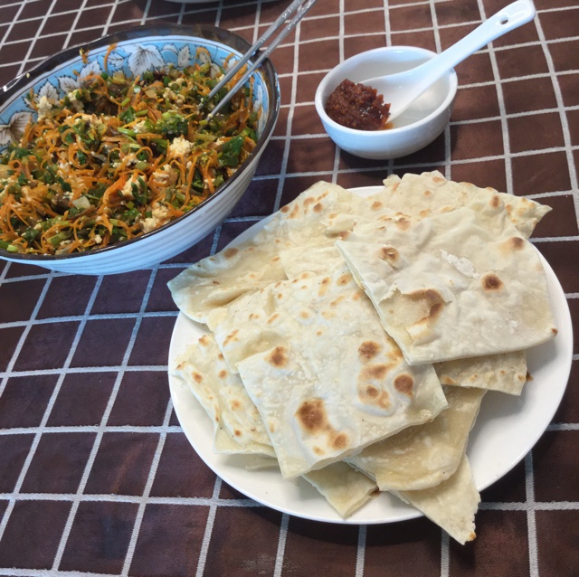 美味午餐!!真好!香干豆腐配上灌饼和大酱!!