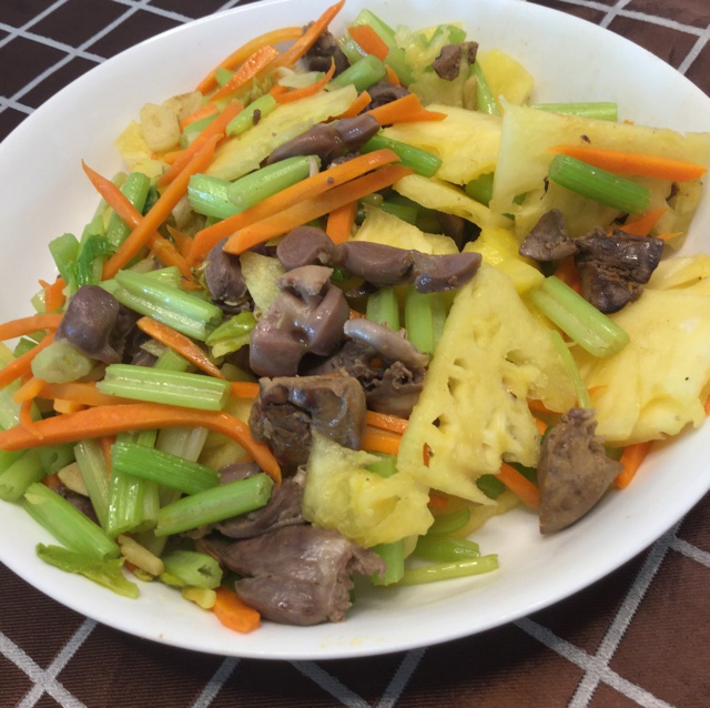 菠萝西芹炒鸡杂!!清新自然!