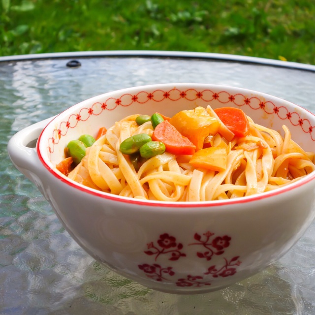 没有黑椒酱了!于是乱来了辣酱炒面。味道嘛就是勉强可以吃。