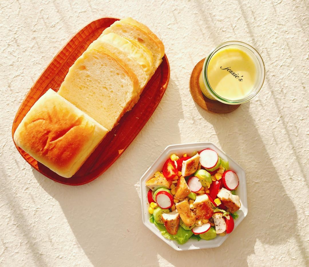 昨天做的北海道吐司直接切厚片当早餐了...