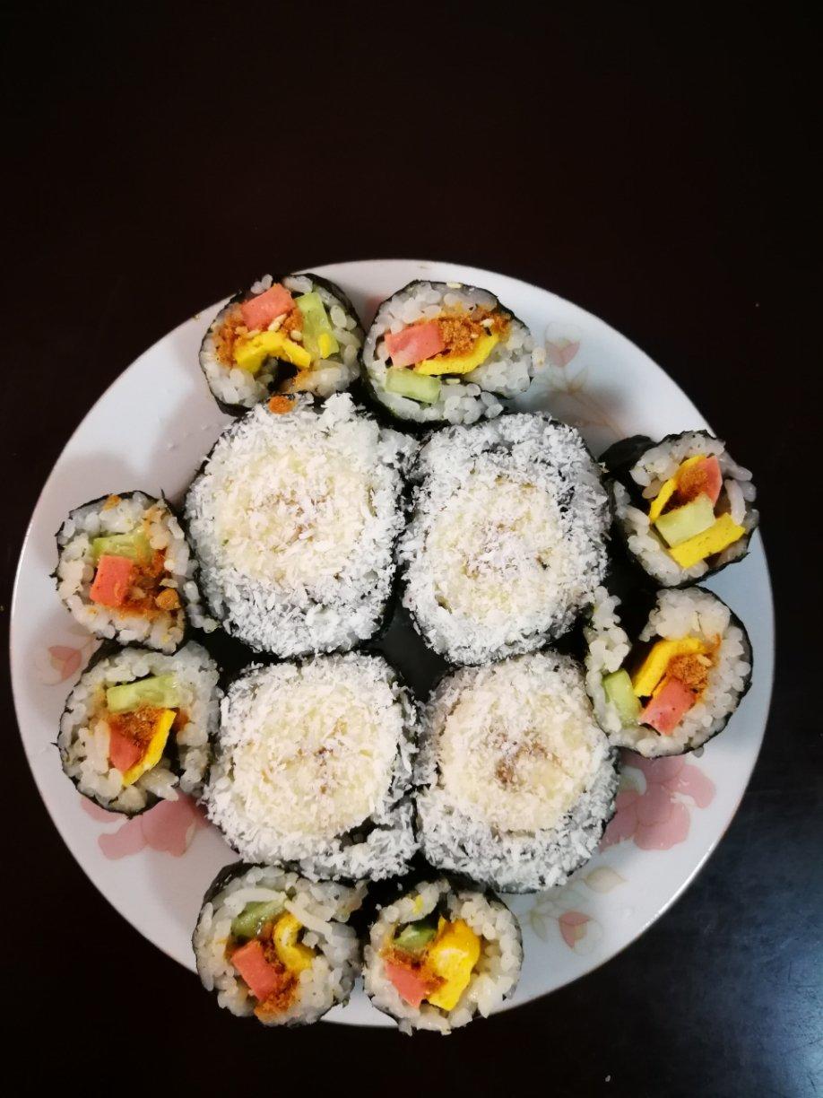 今天做了香蕉椰蓉寿司和彩色寿司